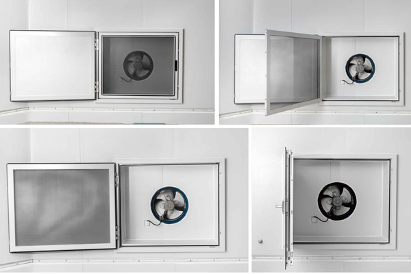 5、保溫密封窗與防蟲防雀網(wǎng)可同時180度開啟,通過門吸固定在墻面上。